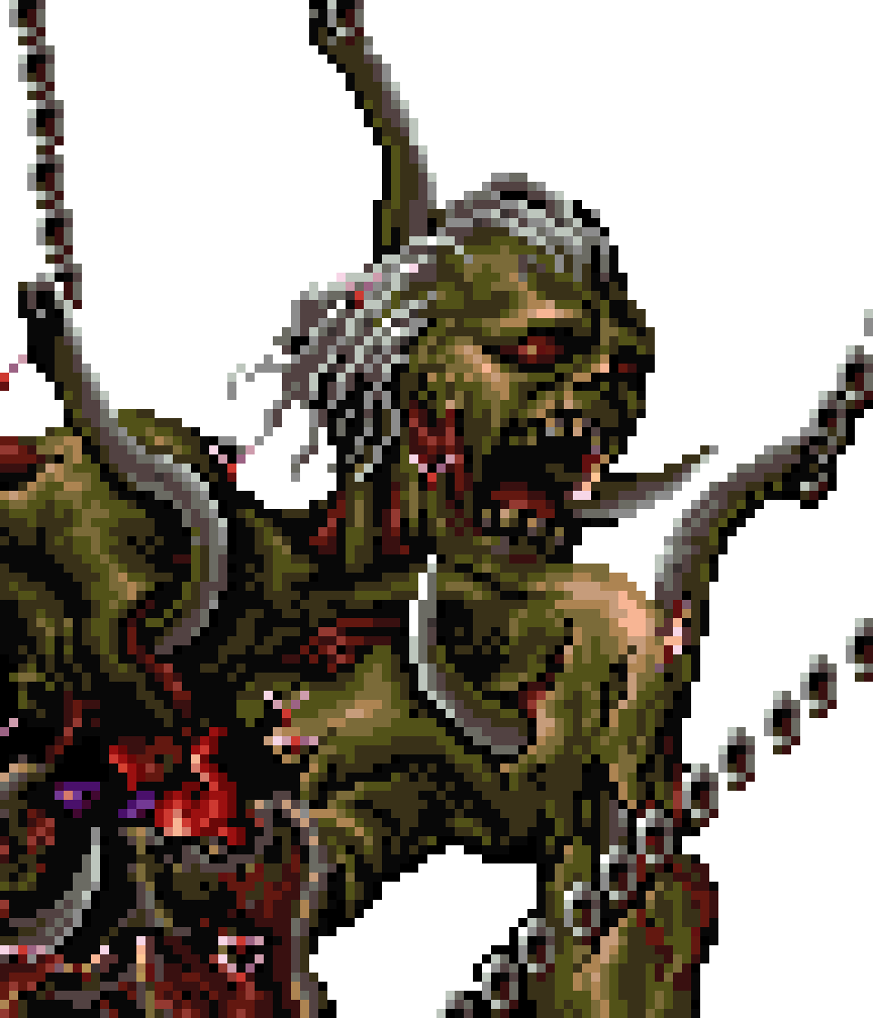 Beelzebub first appeared in Castlevania: Symphony of the Night as a giant, rotting corpse boss with no attacks of his own. Alucard may fight him in the Reverse Castle, in the Necromancy Laboratory area, as an optional boss. Beelzebub "attacks" by taking control of the giant flies that are attracted to the stench of rotten flesh. He also releases maggots that can poison Alucard on contact. The battle starts rather easy, as his legs are easy to hit; however, the more damage he takes, the more body parts will fall down, eventually leaving only his head and half of his torso hanging high and surrounded by giant flies, making it difficult to reach and attack.