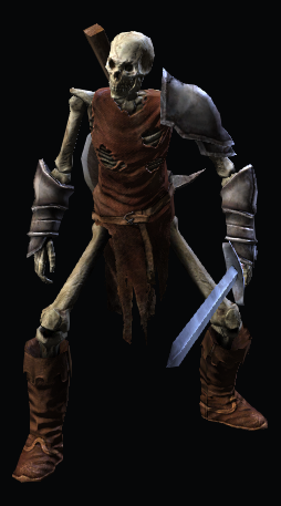 | Despite being dead, the remains of these warriors retain an echo of what they once were when alive and so continue to defend the castle. Loyal to their new lord, they keep watch tirelessly over every corner of the fortress, hunting intruders and never abandoning their posts for as long as their bones endure. | Weak: Boomerang Difficulty: 1/5 HP: 80 Exp: 25 |