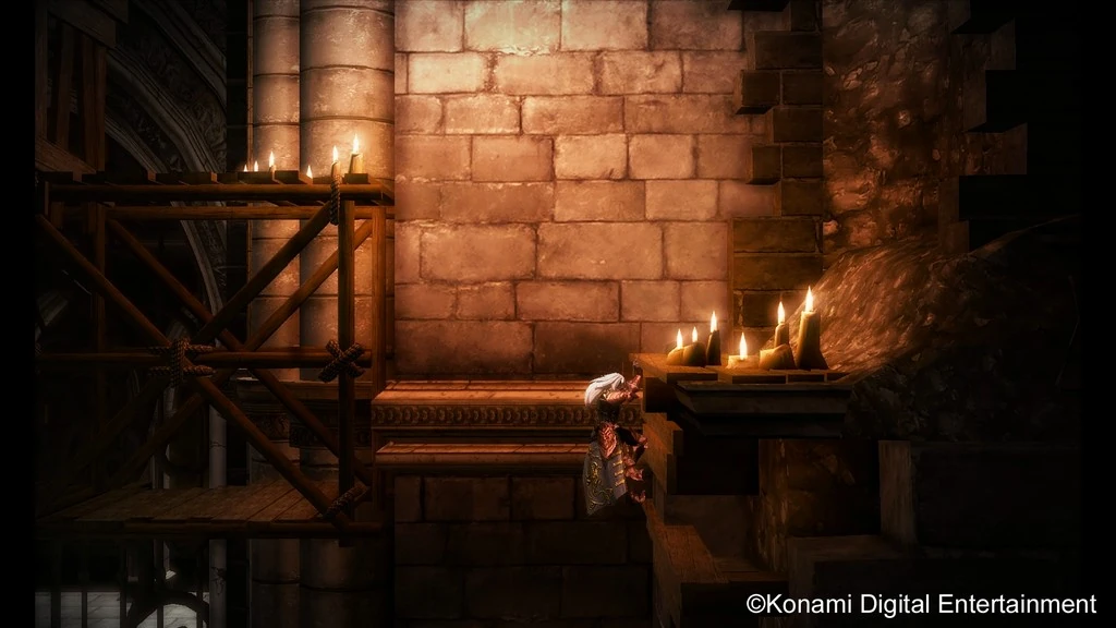 The Belfry, better identified as the castle's bell tower, contains mostly-under-construction inner workings that Alucard must maneuver around. His only challenge here will be to pass over a large obstruction by climbing, rappelling and swinging around the room's outer extremities, the trek interrupted by gargoyles and skeleton warriors. After reaching the top of the obstruction, he can drop down and exit left, the next area waiting silently.