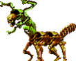 In its initial form, the Bone Golem resembles a centaur-like monstrosity that has two pairs of arms, three pairs of hind legs and a tail. It will slowly pace back and forth and is able detach one of its arms and reattach its segments to the other, sending it forward for a ranged attack.