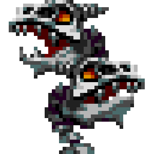 The Bone Pillar is another one of the classic staples in the Castlevania series. It is a construction made with two fierce dinosaur heads stacked on top of each other, which shoot fireballs at oncoming adventurers. In later games, Bone Pillars are often constructed with more than two heads and sometimes form very large pillars. Also in some of the more recent games, the player character can step onto them without sustaining damage; and in some cases, their presence actually forms part of small puzzles where the player must destroy them strategically in order to use them as impromptu stepping platforms to reach ledges high above earlier in the game.