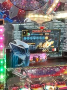 When you win the Super Bonus, the game tells you to pay attention to the center spiral. A video is shown, as a remix of "Bloody Tears" plays. Then the hole at the bottom of the spiral opens and a whopping 500 marbles comes out of the spiral, go down a ramp, and onto the field. The resulting win mostly knocks out all the cards on the field. After the payout, a special graphic celebrates the 500 marble win, and you will be shown how to get the "Multiple Endings Bonus". After that, you will go back to the main game and one card is paid out as service.