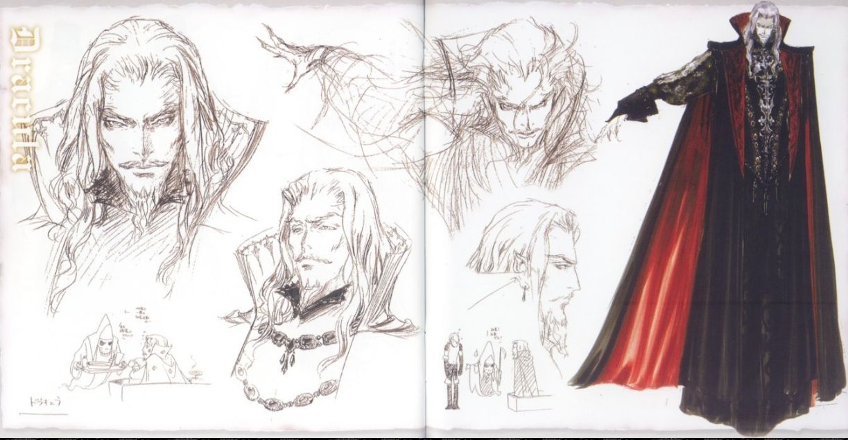 When Ayami Kojima became the regular illustrator of the series, Dracula took on an especially regal air with lavish clothing, as seen in Symphony of the Night, Harmony of Dissonance and Curse of Darkness. Dracula's appearances have been very inconsistent over the years. Sometimes he is an old man, other times he is young (The Dracula X Chronicles, Portrait of Ruin); sometimes he's ghostly, other times he appears fairly regular, but he always retains vampiric archetypal traits. As a human, Dracula was Mathias Cronqvist, a young man with long dark hair and light blue eyes.