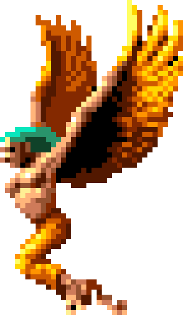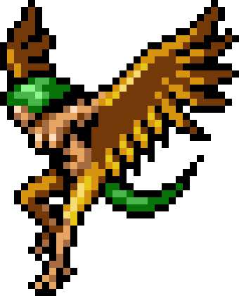 | A bird-like creature with the torso of a woman. Throws petrification knives in addition to using her wings and claws. | Abil: Stone | ||||