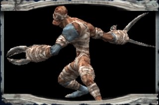 A bloody corpse boasting very large and sharp claws for fingers and with parts of his body wrapped in bandages. The Mad Diver hunts his victims by burrowing himself whole into the earth and then moving freely underground, eventually launching himself back to the surface for a surprise attack.