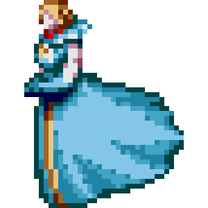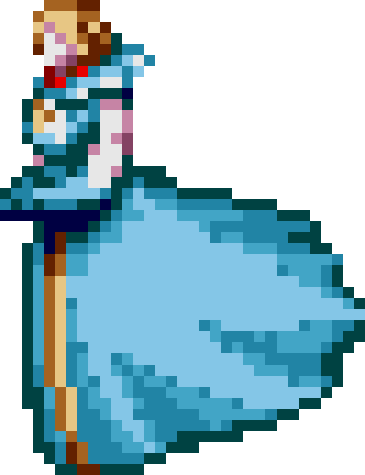 At first, the Princess of Moss appears as the ghost of Marie Antoinette,[1] wearing a sumptuous Rococo era long dress fashioned in blue and gold. She enters the screen from above and hovers around, attempting to bump into the player. A giant ripped-open cocoon can be seen in the background, hinting on the Princess's true nature.