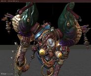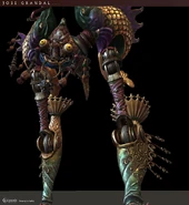 It can jump and try to crush Dracula, and uses different attacks to catch the vampire. When damaged, it can extend its legs and change its strategy. He summons two deadly mechanical creatures during the fight: the Knight and the Dragon.