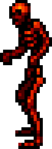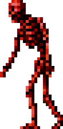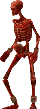 The Red Skeleton is a human skeleton stained in the blood of countless victims. It commonly walks forward steadily, and instead of dying, just collapses into a pile of bones. It will soon reassemble itself and can only be completely killed by using a special weapon or spell.