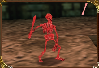 | Japanese Description: (*) A monster in the shape of a skeleton. There are white skeletons of the dead type and red skeletons of the undead (true) type. Generally difficult to deal with due to their attacking behavior. |