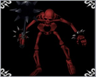 | Japanese Description: (*) A skeleton of blood red. Blood symbolizes life; perhaps for this reason, it always revives after a certain period of time, even if destroyed. |