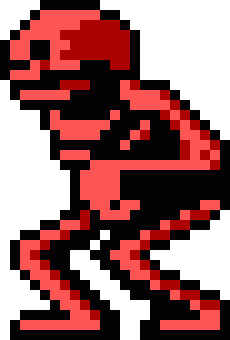 While absent in the original arcade game, Red Skeletons are added in this version. In Hard Mode, one of them spawns in the elevator in the Clocktower, but it is highly suggested to lure it away from the elevator before going up; otherwise, it will stay in the elevator and cause much trouble.