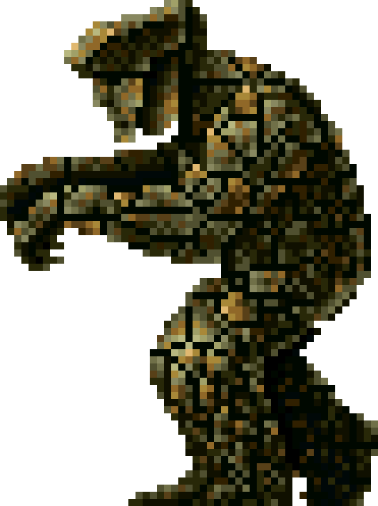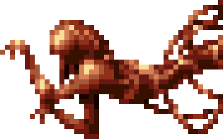 | Japanese Description: (*) Jumps with its massive body and drops blocks from the ceiling. |