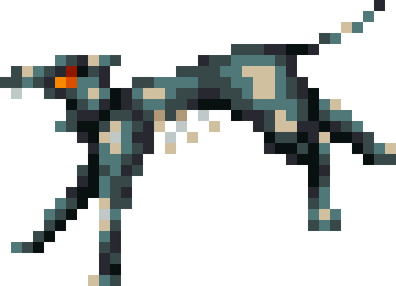 | Japanese Description: (*) A skeleton of blood red. Blood symbolizes life; perhaps for this reason, it always revives after a certain period of time, even if destroyed. |