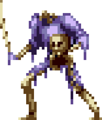 | Japanese Description: (*) This is a skeleton that swings a whip like Simon. However, it only attacks while standing, so if you crouch, the whip is not scary at all. |