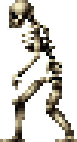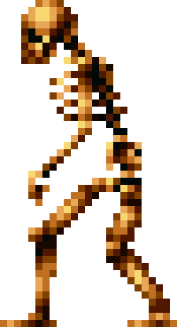 | Japanese Description: (*) It is a skeleton that throws bones. Since the bones have low durability, the best way to handle them is by swinging to deal with them. It will jump when there is no foothold. |