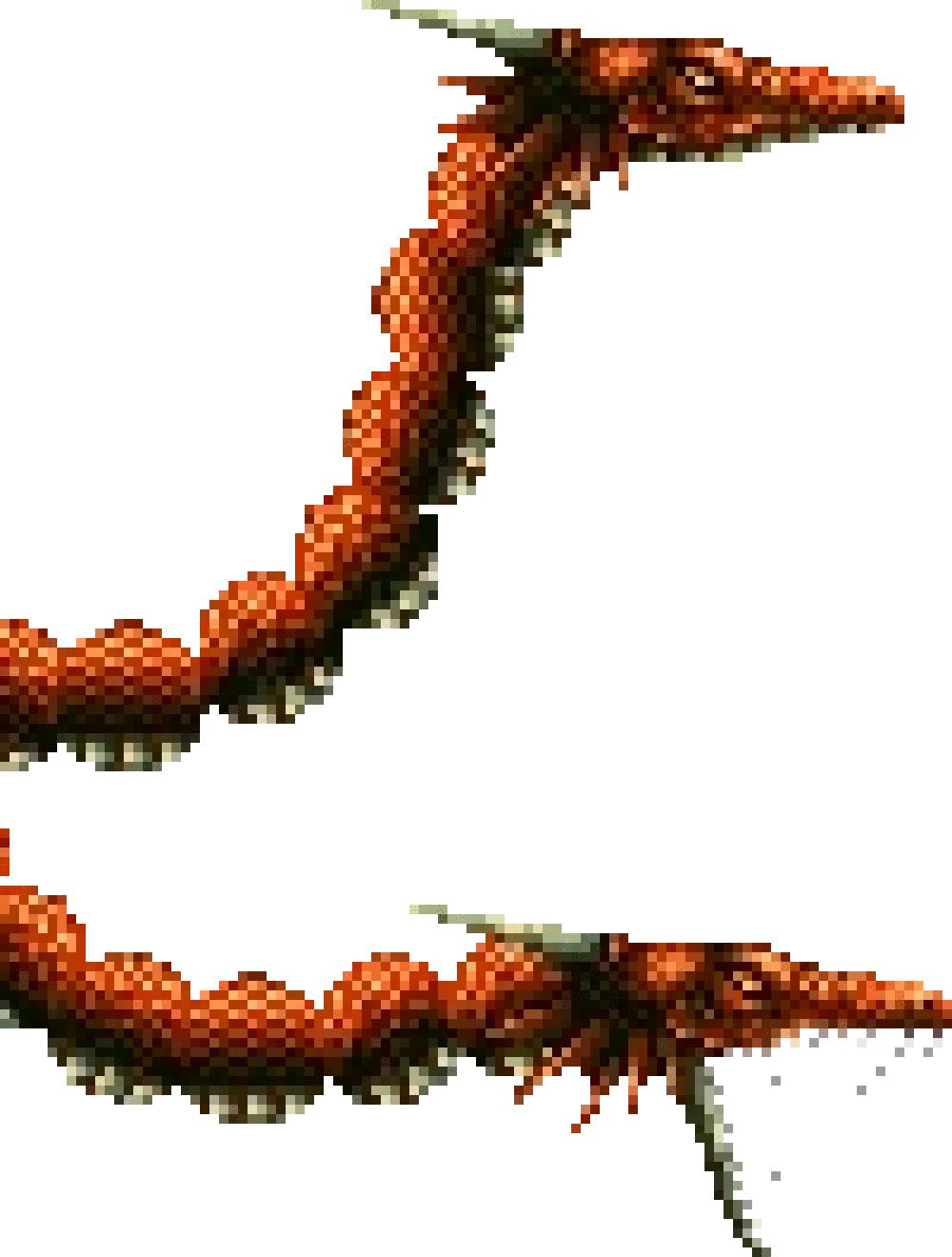| Japanese Description: (*) It breathes fireballs while moving its long neck. |