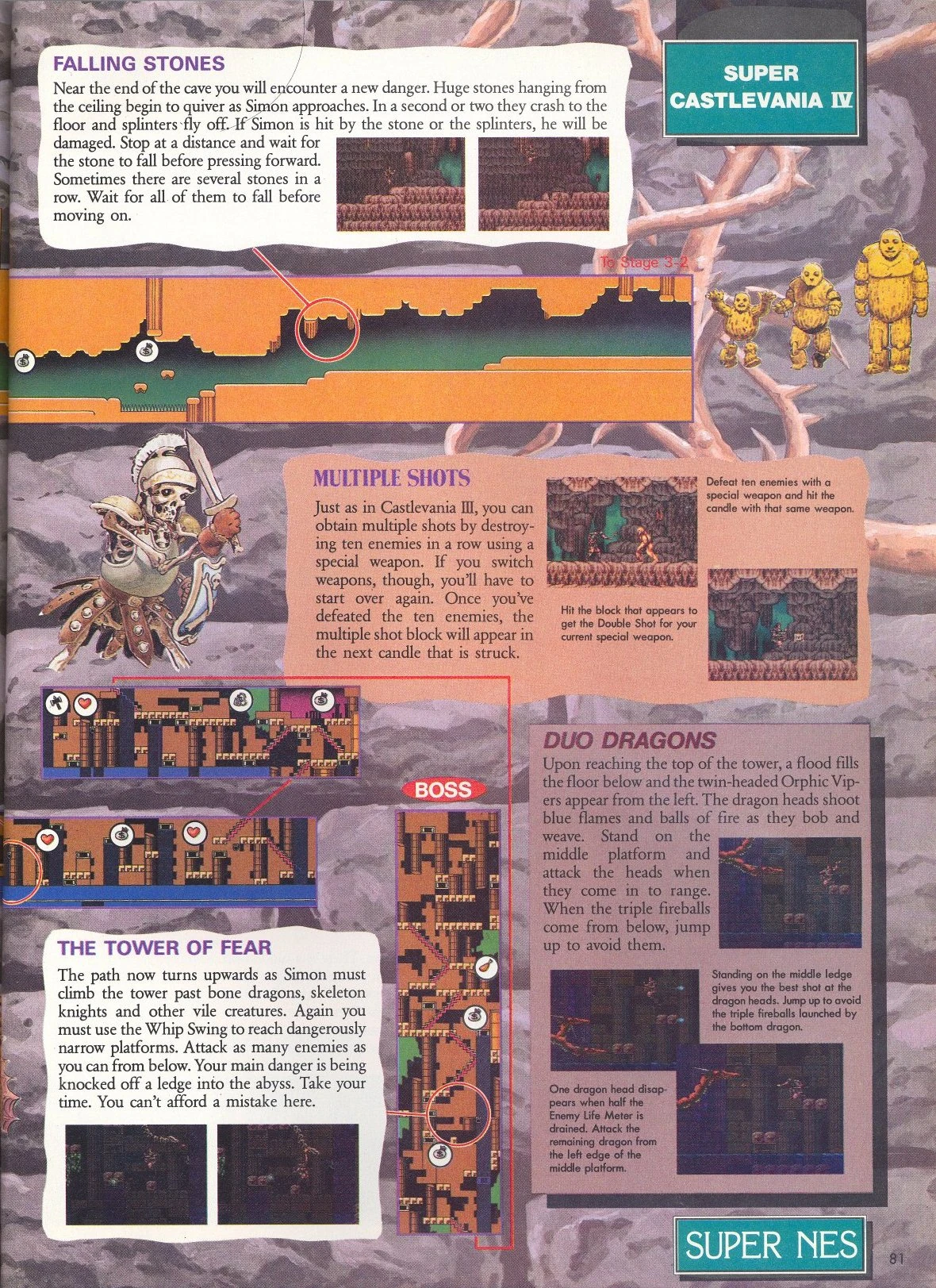 - Nintendo Power Super Castlevania IV Guide hints: Scans of pages 80 and 81 hosted on the Castlevania Dungeon.